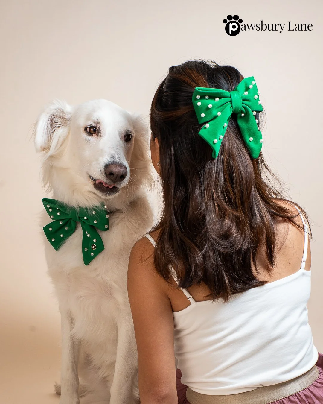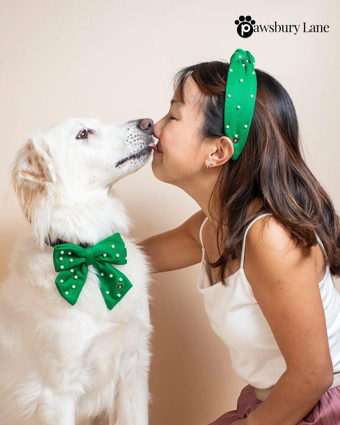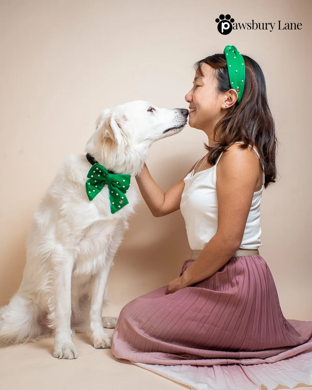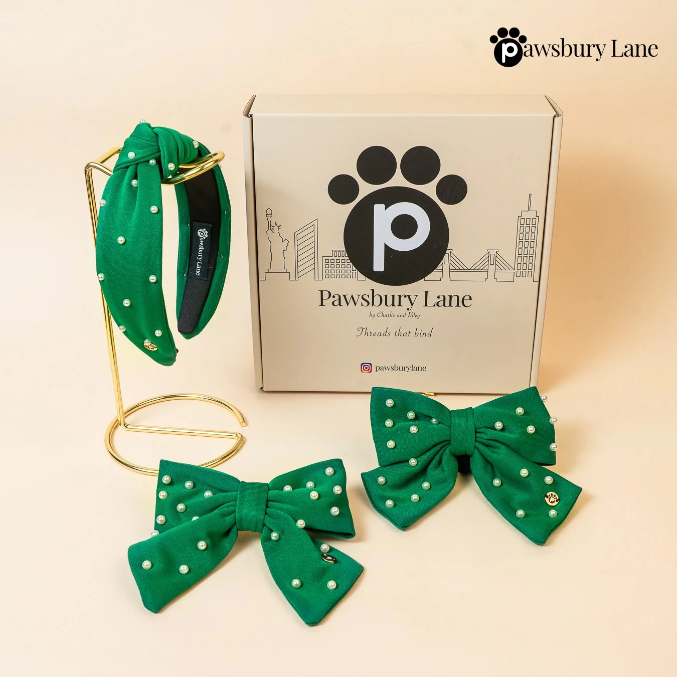 Celebrate the season in matching style with the Sugar and Pearls Royal Jet Bundle — featuring a pearl-accented pet sailor bow, coordinating headband, and hair bow barrette for you. Perfect for holiday photos or festive outings, this set adds timeless charm and sparkle to every moment.